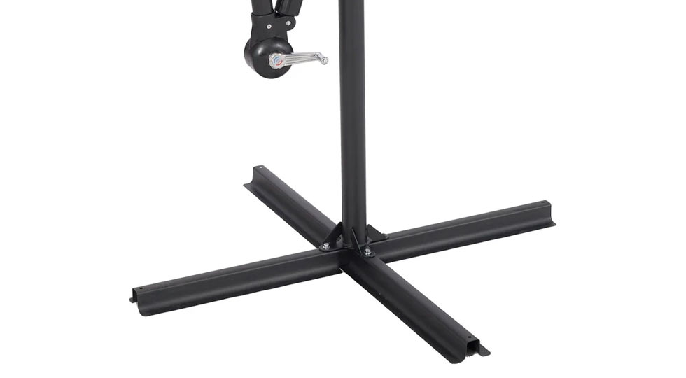 -Base en cruz que aporta estabilidad (puede colocarse con pesos adicionales para mayor firmeza)